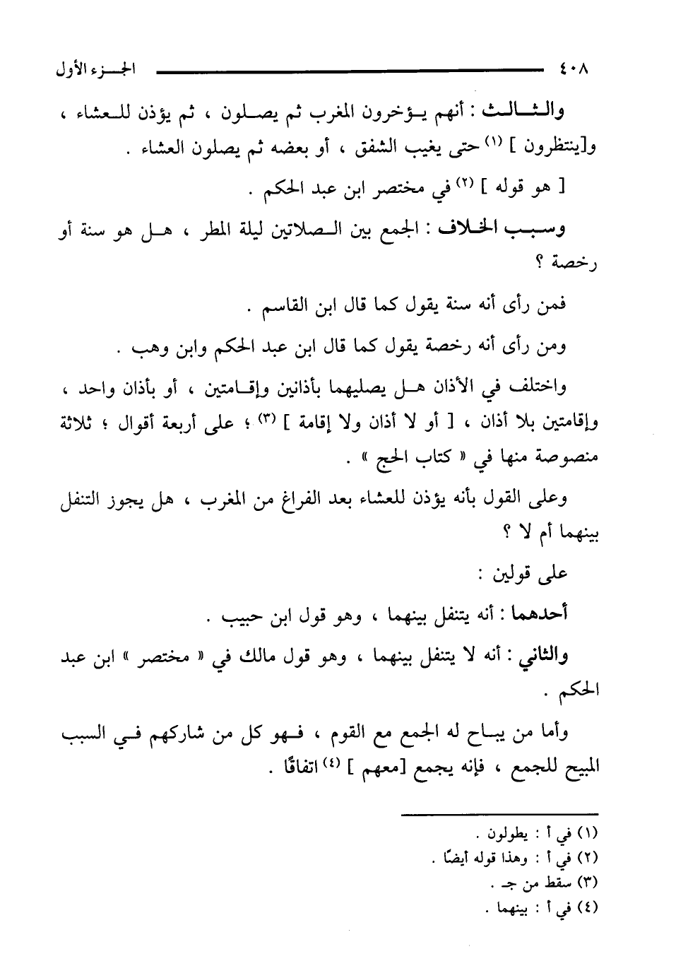 والثالث: أنهم يؤخرون المغرب ثم يصلون، ثم يؤذن للعشاء، و [ينتظرون] (¬1) حتى يغيب الشفق، أو بعضه ثم يصلون العشاء.