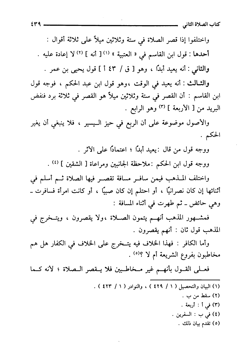 (¬1) البيان والتحصيل (1/ 429)، والنوادر (1/ 423).