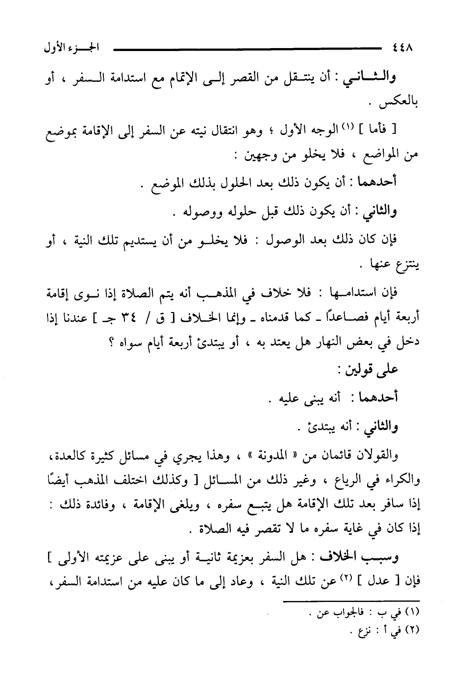 وسبب الخلاف: هل السفر بعزيمة ثانية أو يبنى على عزيمته الأولى] فإن [عدل] (¬2) عن تلك النية، وعاد إلى ما كان عليه من استدامة السفر،