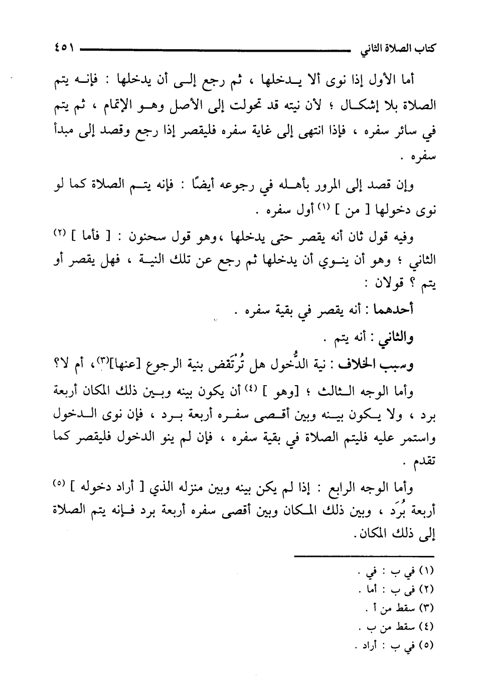 وأما الوجه الرابع: إذا لم يكن بينه وبين منزله الذي [أراد دخوله] (¬5) أربعة بُرَد، وبين ذلك المكان وبين أقصى سفره أربعة برد فإنه يتم الصلاة إلى ذلك المكان.