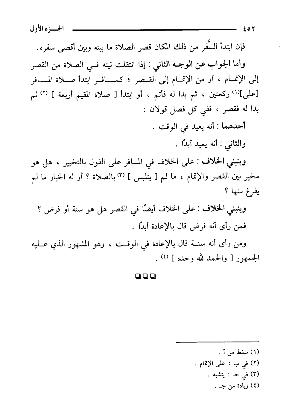 ومن رأى أنه سنة قال بالإعادة في الوقت، وهو المشهور الذي عليه الجمهور [والحمد لله وحده] (¬4).