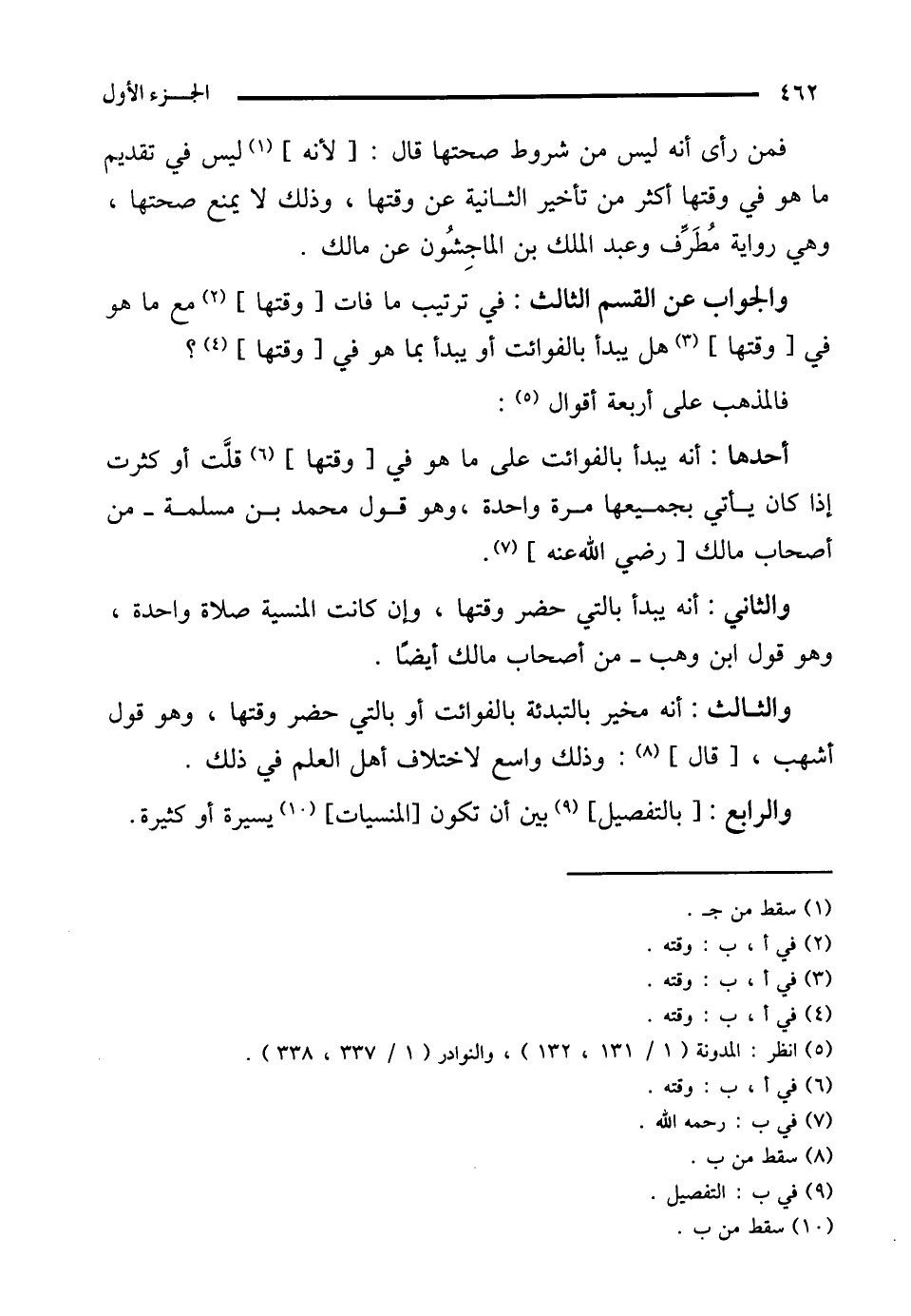 والجواب عن القسم الثالث: في ترتيب ما فات [وقتها] (¬2) مع ما هو في [وقتها] (¬3) هل يبدأ بالفوائت أو يبدأ بما هو في [وقتها] (¬4)؟
