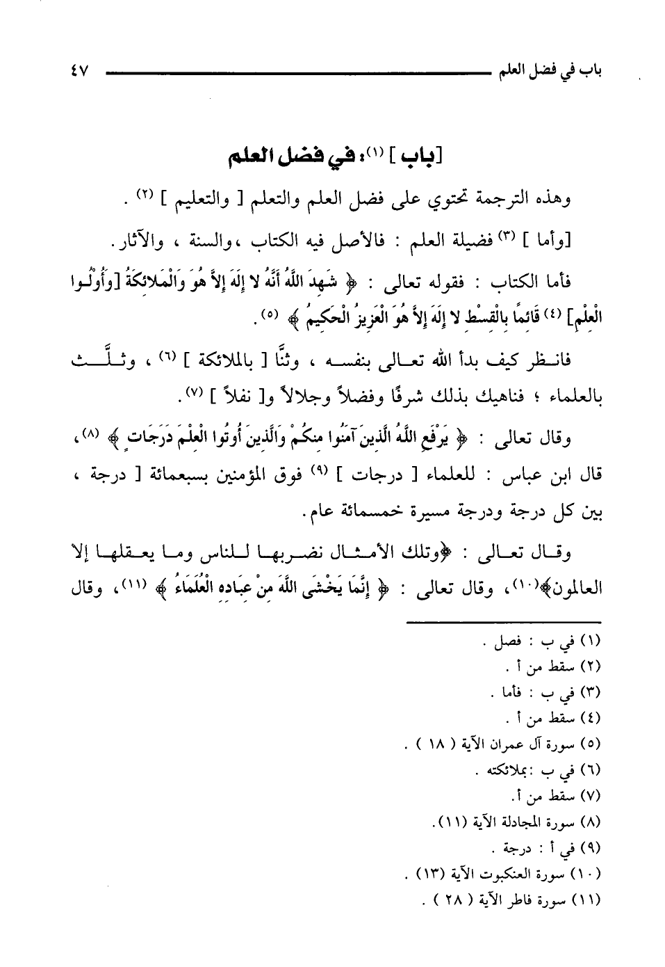 وهذه الترجمة تحتوي على فضل العلم والتعلم [والتعليم] (¬2).