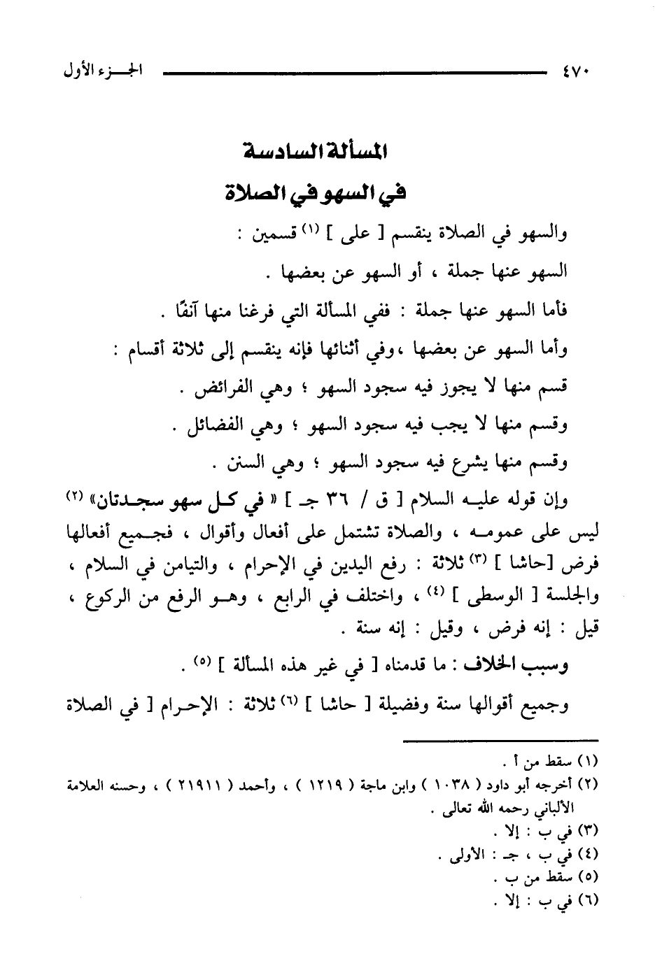 وقسم منها يشرع فيه سجود السهو؛ وهي السنن.