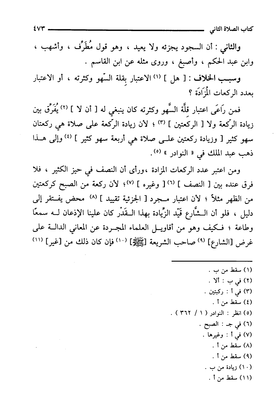 فمن رَاعَى اعتبار قِلَّة السَّهو وكثرته كان ينبغي له [أن لا] (¬2) يُفَرِّق بين زيادة الرّكعة ولا [الركعتين] (¬3)؛ لأن زيادة الركعة على صلاة هي ركعتان سهو كثير [وزيادة ركعتين على صلاة هي أربعة سهو كثير] (¬4) وإلى هذا ذهب عبد الملك في "النوادر" (¬5).