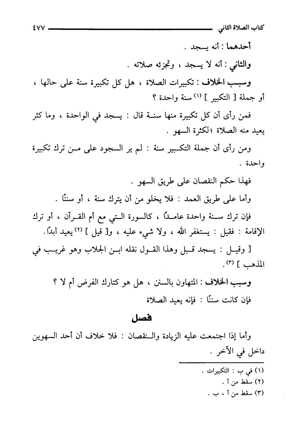وسبب الخلاف: تكبيرات الصلاة، هل كل تكبيرة سنة على حالها، أو جملة [التكبير] (¬1) سنة واحدة؟