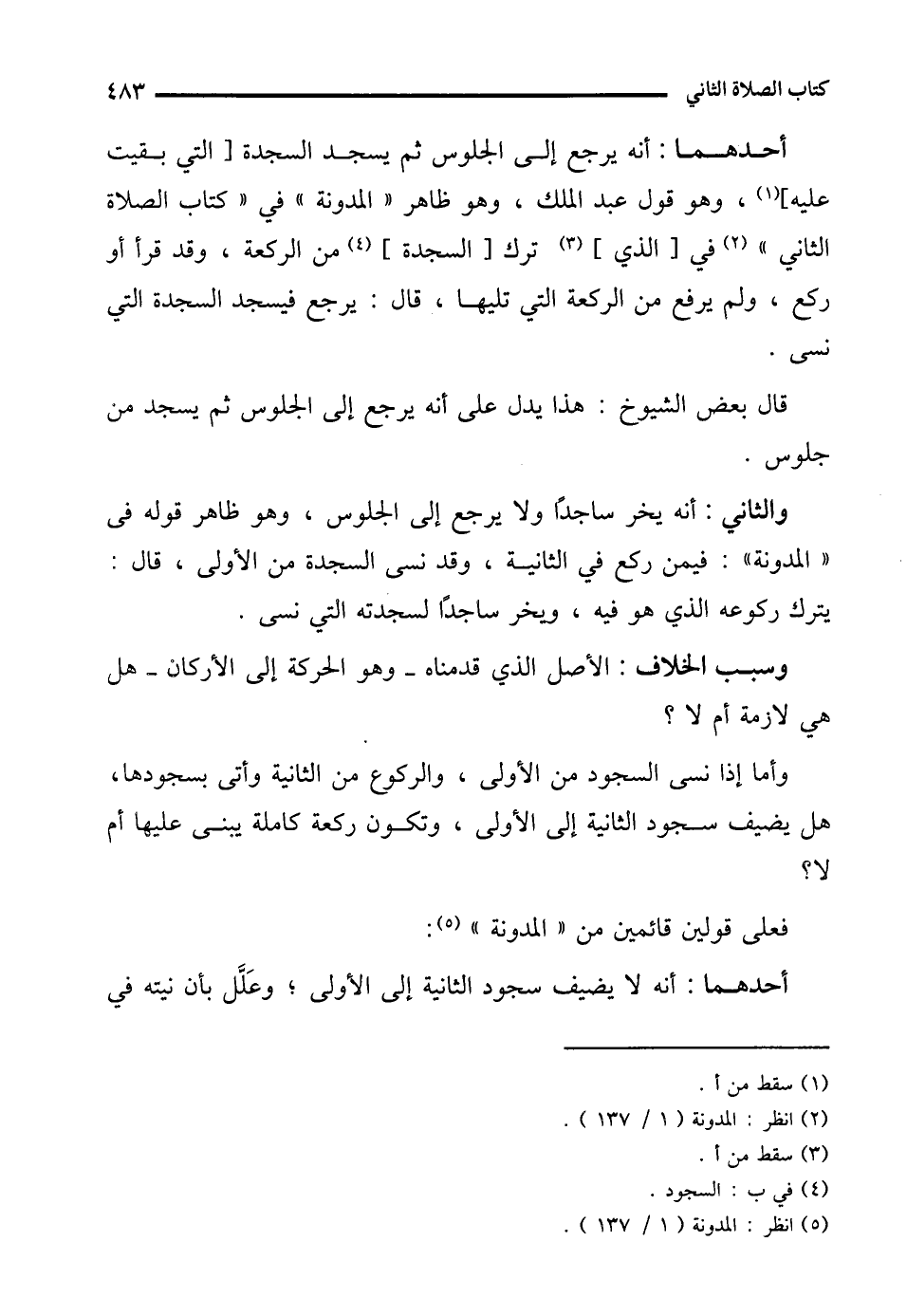 (¬5) انظر: المدونة (1/ 137).