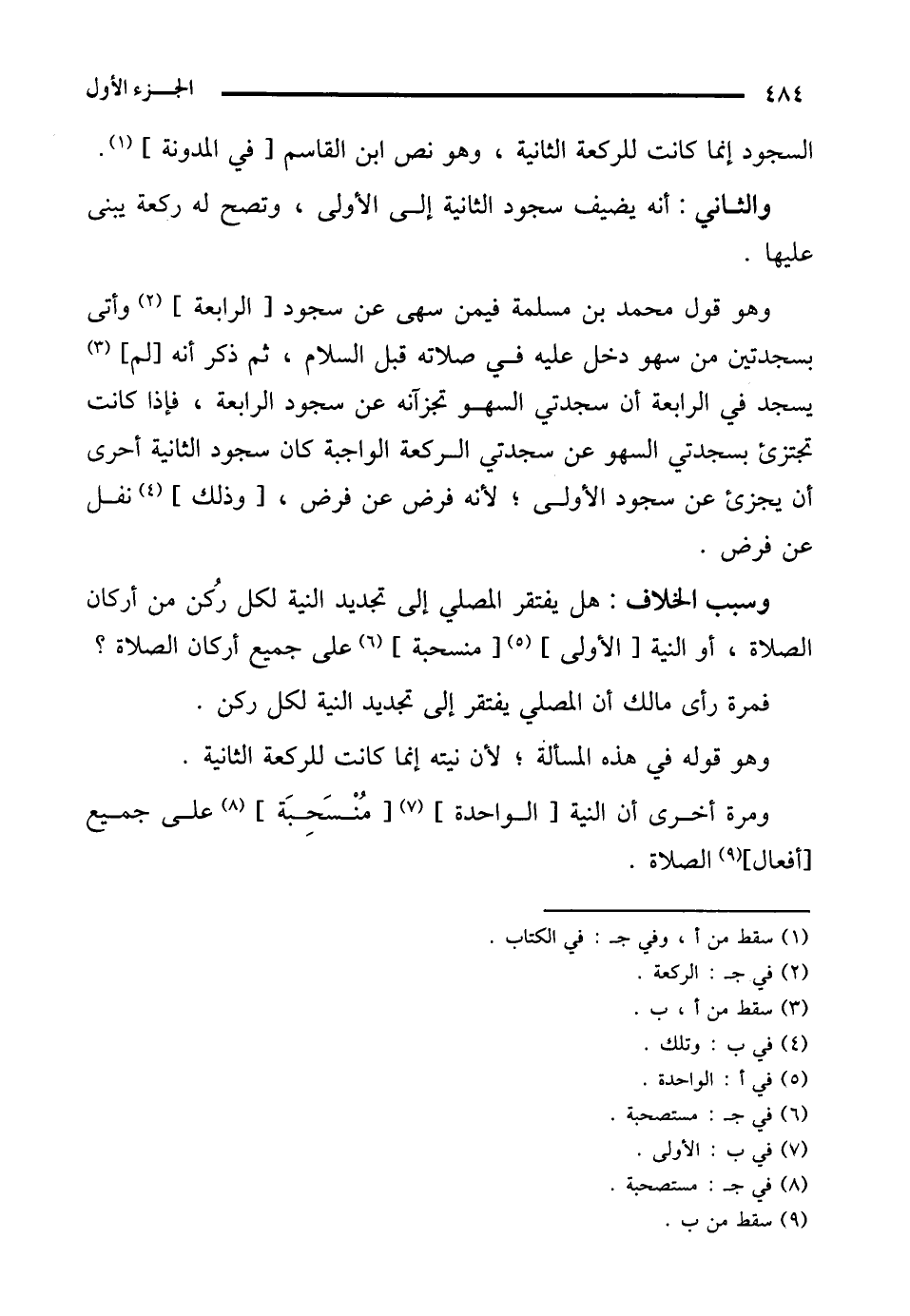 السجود إنما كانت للركعة الثانية، وهو نص ابن القاسم [في المدونة] (¬1).