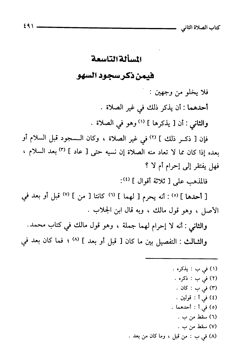 فإن [ذكر ذلك] (¬2) في غير الصلاة، وكان السجود قبل السلام أو بعده إذا كان مما لا تعاد منه الصلاة إن نسيه حتى [عاد] (¬3) بعد السلام، فهل يفتقر إلى إحرام أم لا؟