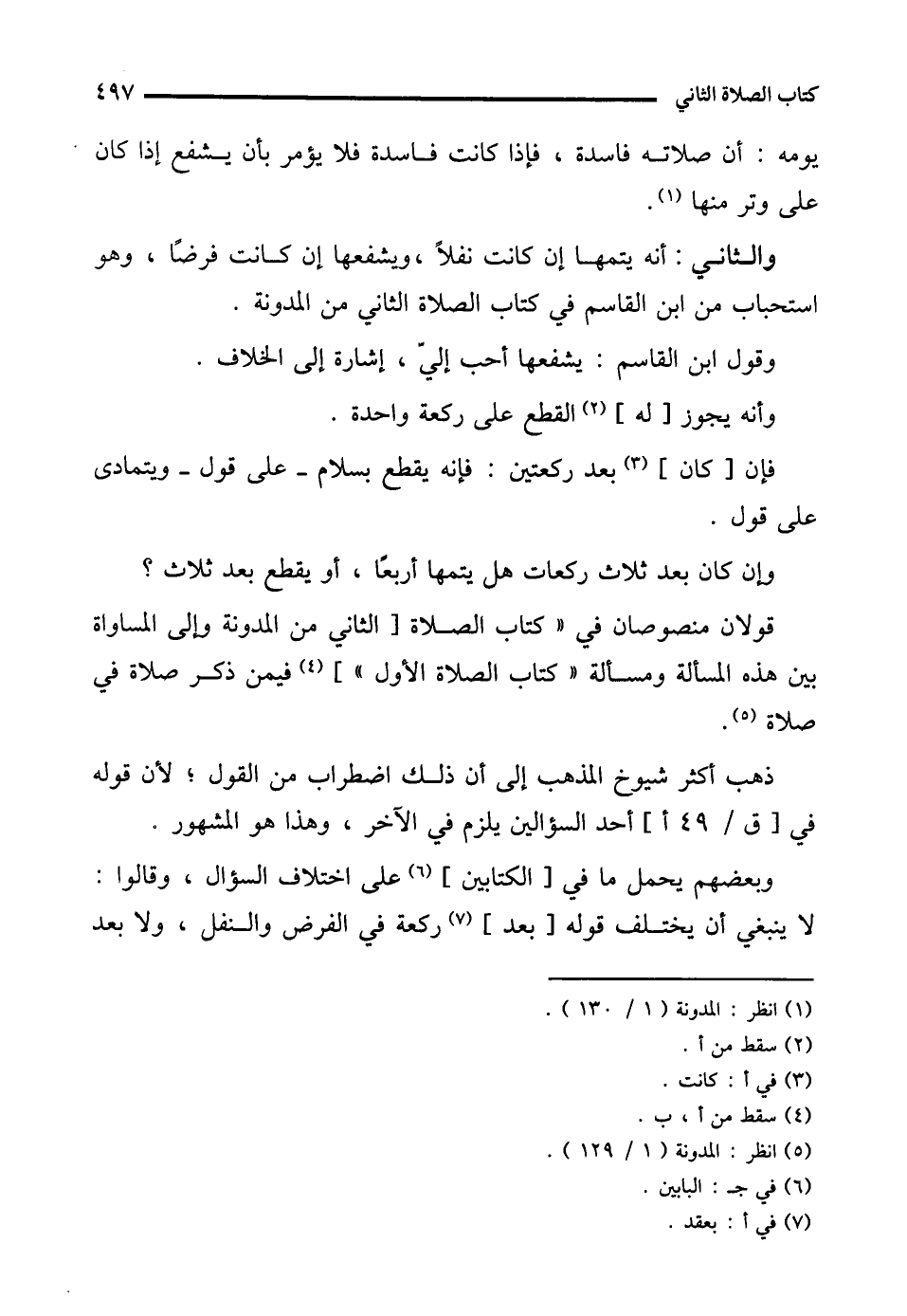 وبعضهم يحمل ما في [الكتابين] (¬6) على اختلاف السؤال، وقالوا: لا ينبغي أن يختلف قوله [بعد] (¬7) ركعة في الفرض والنفل، ولا بعد