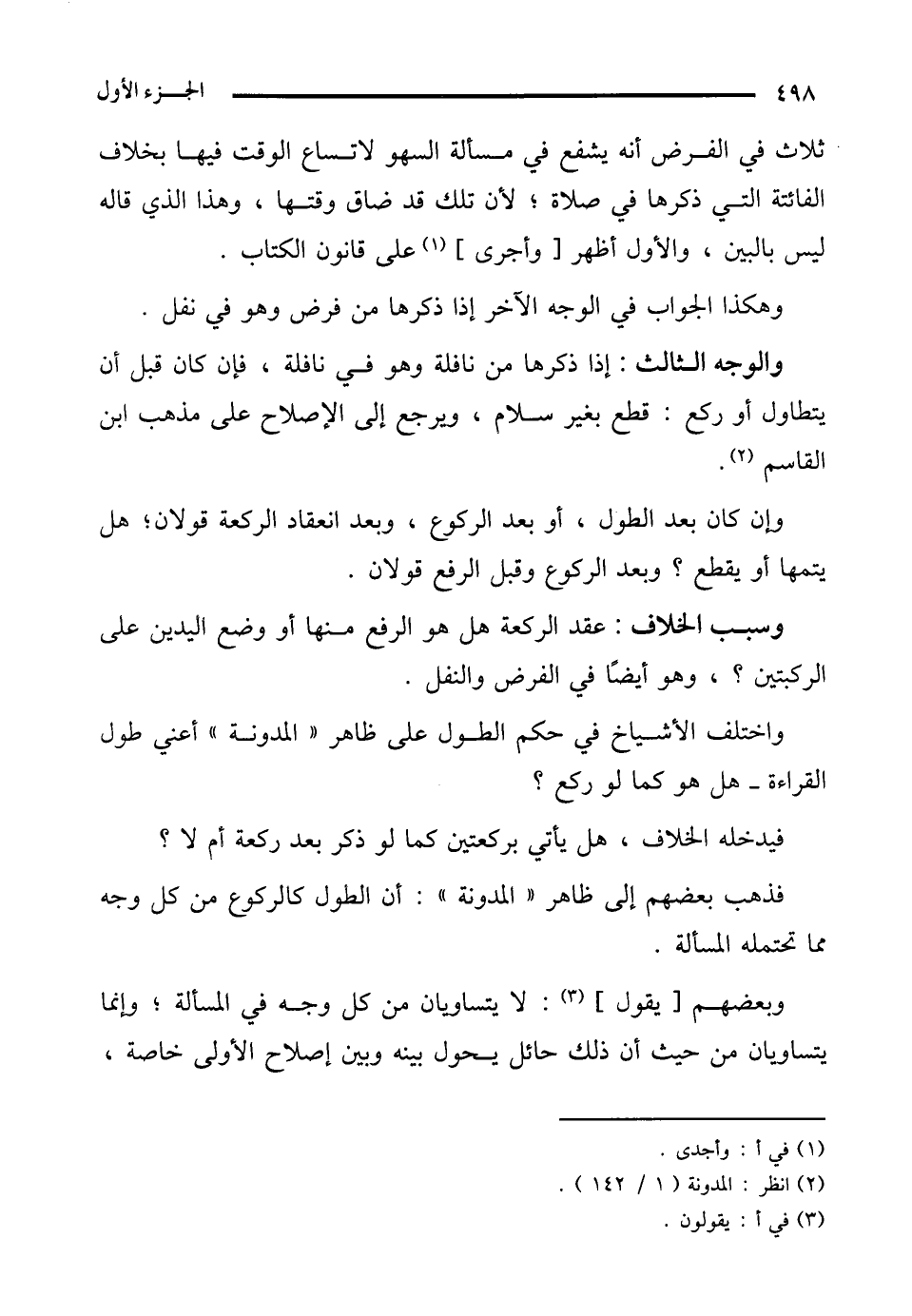 ثلاث في الفرض أنه يشفع في مسألة السهو لاتساع الوقت فيها بخلاف الفائتة التي ذكرها في صلاة؛ لأن تلك قد ضاق وقتها، وهذا الذي قاله ليس بالبين، والأول أظهر [وأجرى] (¬1) على قانون الكتاب.