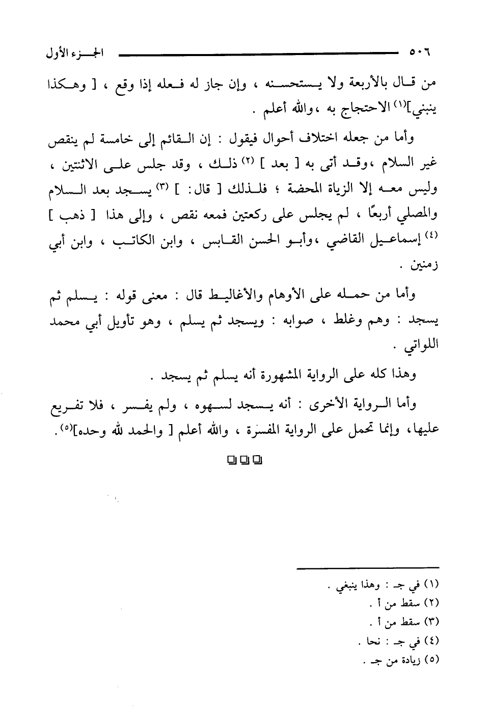 وأما من جعله اختلاف أحوال فيقول: إن القائم إلى خامسة لم ينقص غير السلام، وقد أتى به [بعد] (¬2) ذلك، وقد جلس على الاثنتين، وليس معه إلا الزيادة المحضة؛ فلذلك [قال:] (¬3) يسجد بعد السلام والمصلي أربعًا، لم يجلس على ركعتين فمعه نقص، وإلى هذا [ذهب] (¬4) إسماعيل القاضي، وأبو الحسن القابس، وابن الكاتب، وابن أبي زمنين.