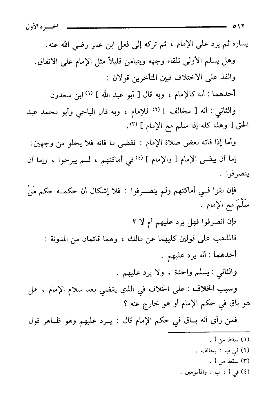 والثاني: أنه [مخالف] (¬2) للإمام، وبه قال الباجي وأبو محمد عبد الحق [وهذا كله إذا سلم مع الإمام] (¬3).