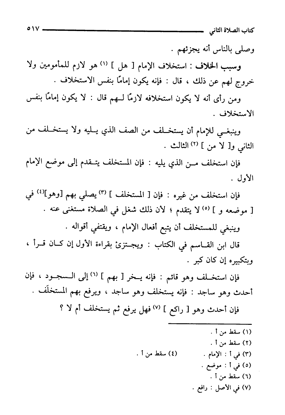 وينبغي للمستخلف أن يتبع أفعال الإمام، ويقتفي أقواله.
