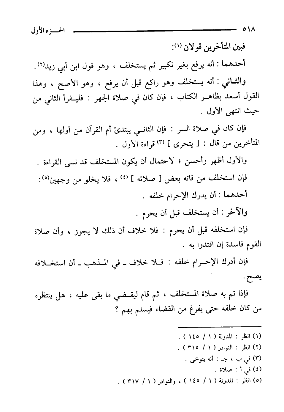 (¬5) انظر: المدونة (1/ 145)، والنوادر (1/ 317).