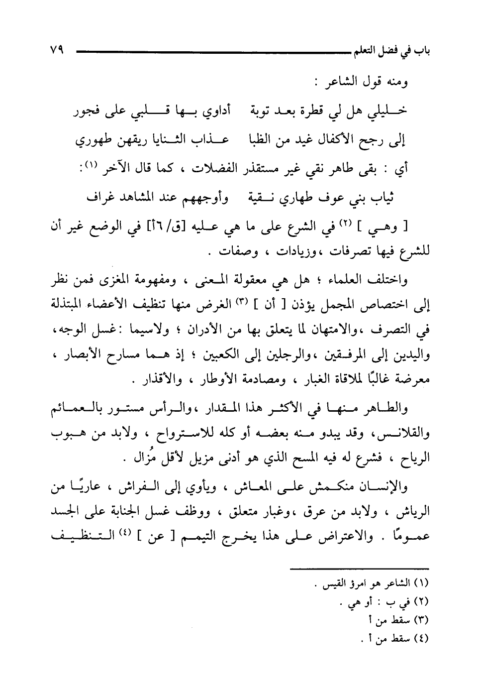 والإنسان منكمش على المعاش، ويأوي إلى الفراش، عاريًا من الرياش، ولابد من عرق، وغبار متعلق، ووظف غسل الجنابة على الجسد عمومًا. والاعتراض على هذا يخرج التيمم [عن] (¬4) التنظيف