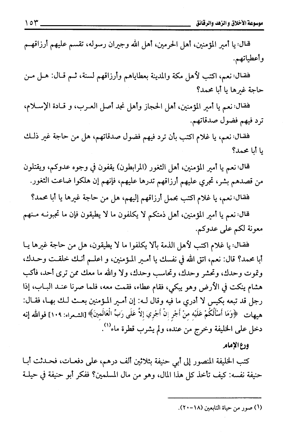 فقال: نعم، يا غلام اكتب بحمل أرزاقهم إليهم، هل من حاجة غيرها يا أبا محمد؟