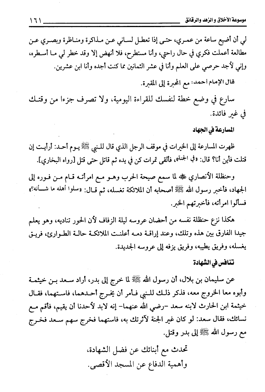قال الإمام أحمد: مع المحبرة إلى المقبرة.
