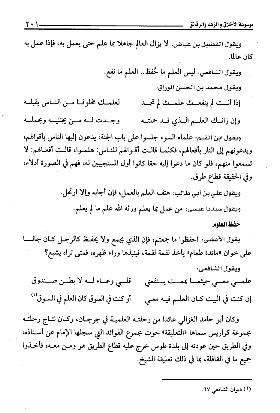 ويقول الشافعي: ليس العلم ما حُفظ .. العلم ما نفع.