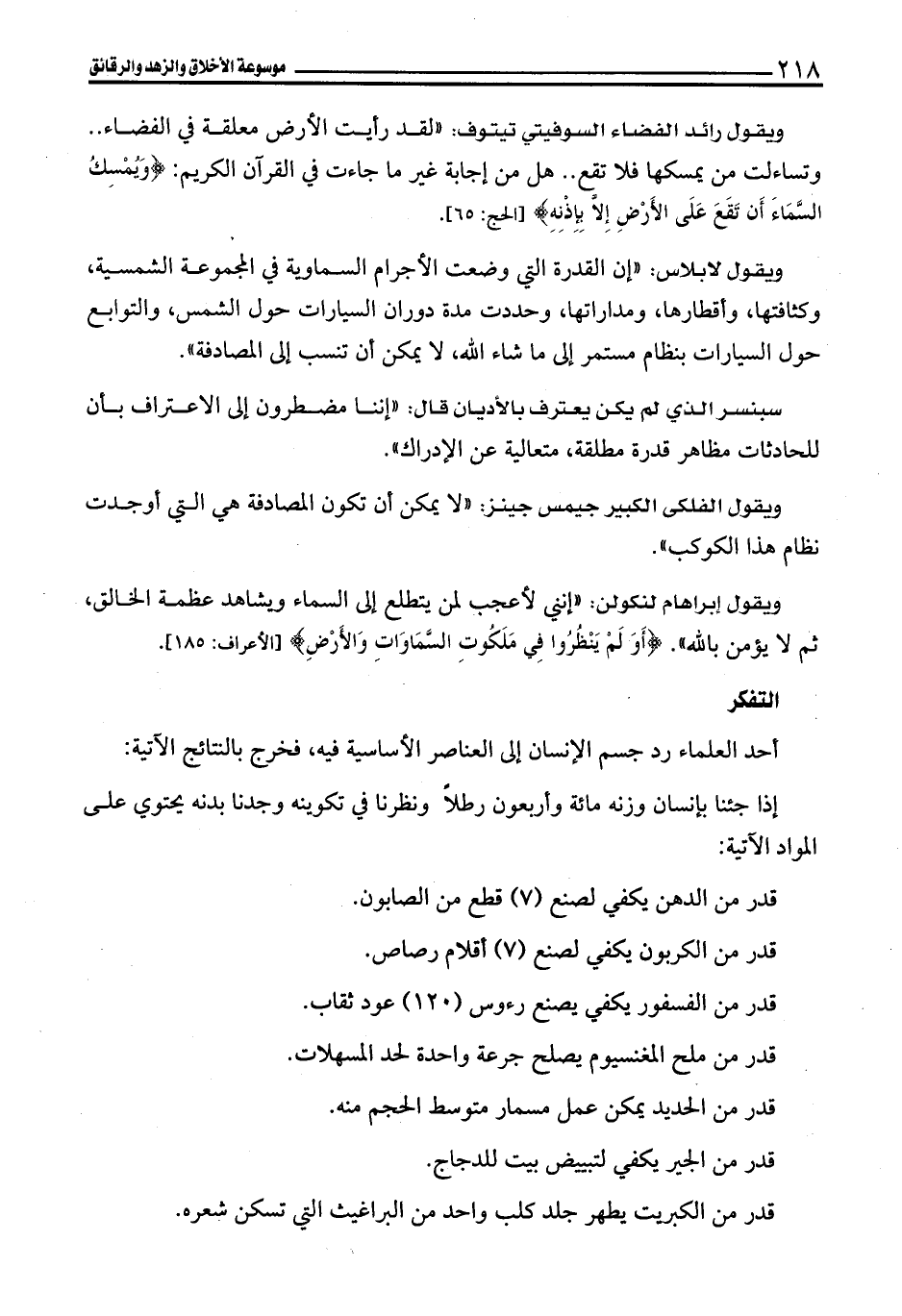 أحد العلماء رد جسم الإنسان إلى العناصر الأساسية فيه، فخرج بالنتائج الآتية:
