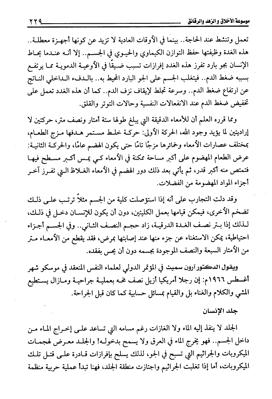 ومما قرره العلم أن للأمعاء الدقيقة التي يبلغ طولها ستة أمتار ونصف متر، حركتين لا إراديتين لما يؤيد وجود الله، الحركة الأولى: حركة خلط مستمر هدفها مزج الطعام، بمختلف عصارات الأمعاء وخمائرها مزجًا تافا حتى يكون الهضم عامًا، والحركة الثانية: عرض الطعام المهضوم على أكبر مساحة ممكنة في الأمعاء كي يمس أكبر مسطح فيها فتمتص منه أكبر قدر، ثم يأتي بعد ذلك دور الهضم في الأمعاء الغلاظ التي تفرز آخر أجزاء المواد المهضومة من الفضلات.