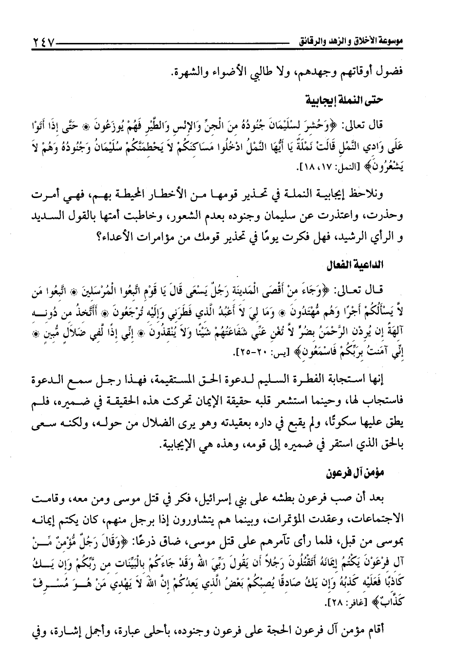 قال تعالى: {وَجَاءَ مِنْ أَقْصَى الْمَدِينَةِ رَجُلٌ يَسْعَى قَالَ يَا قَوْمِ اتَّبِعُوا الْمُرْسَلِينَ (20) اتَّبِعُوا مَنْ لَا يَسْأَلُكُمْ أَجْرًا وَهُمْ مُهْتَدُونَ (21) وَمَا لِيَ لَا أَعْبُدُ الَّذِي فَطَرَنِي وَإِلَيْهِ تُرْجَعُونَ (22) أَأَتَّخِذُ مِنْ دُونِهِ آلِهَةً إِنْ يُرِدْنِ الرَّحْمَنُ بِضُرٍّ لَا تُغْنِ عَنِّي شَفَاعَتُهُمْ شَيْئًا وَلَا يُنْقِذُونِ (23) إِنِّي إِذًا لَفِي ضَلَالٍ مُبِينٍ (24) إِنِّي آمَنْتُ بِرَبِّكُمْ فَاسْمَعُونِ (25)} [يس: 20 - 25].