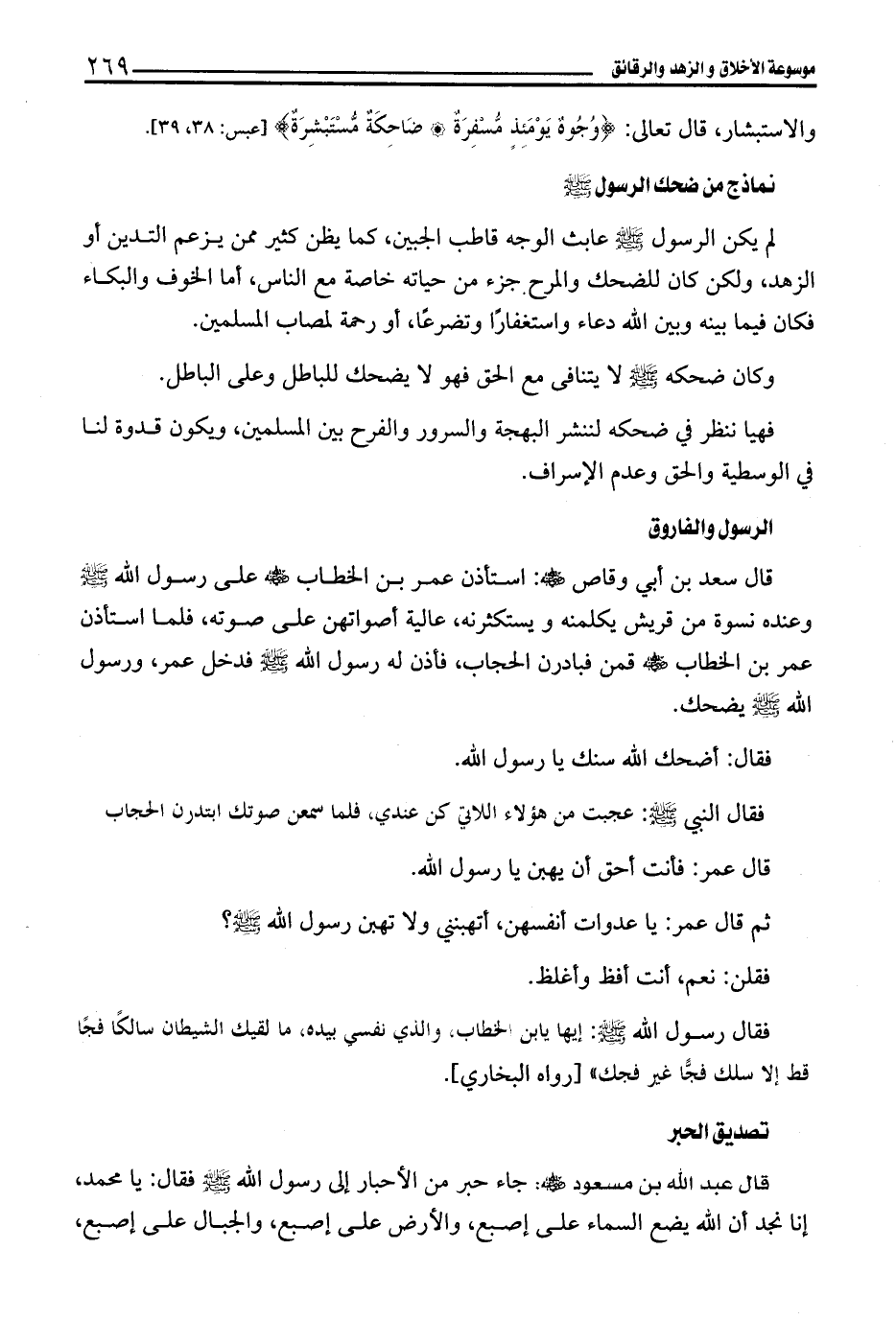 وكان ضحكه - صلى الله عليه وسلم - لا يتنافى مع الحق فهو لا يضحك للباطل وعلى الباطل.