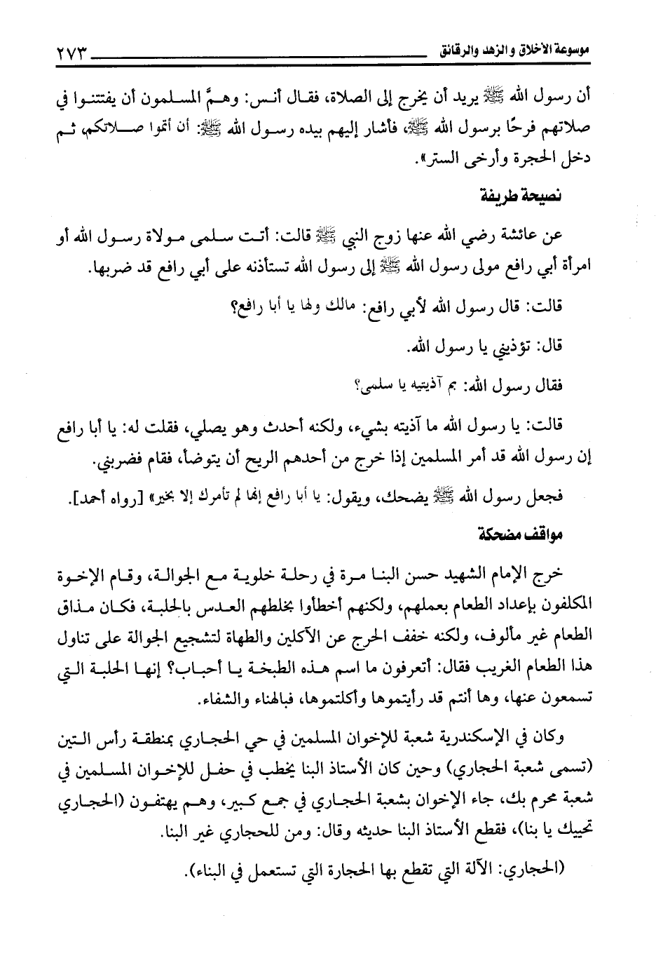 فجعل رسول الله - صلى الله عليه وسلم - يضحك، ويقول: يا أبا رافع إنها لم تأمرك إلا بخير" [رواه أحمد].
