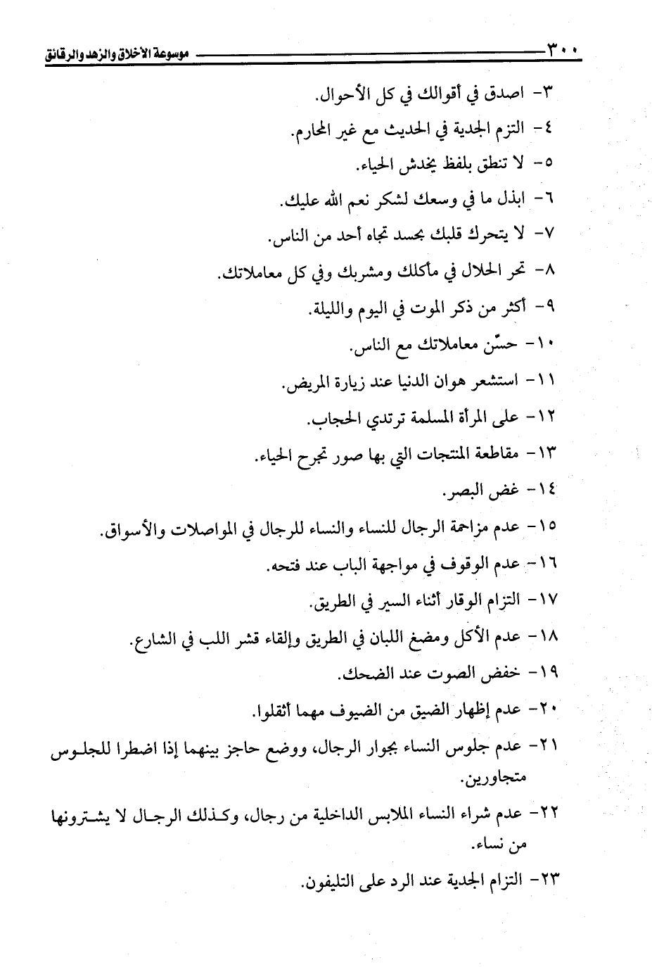 21 - عدم جلوس النساء بجوار الرجال، ووضع حاجز بينهما إذا اضطرا للجلوس متجاورين.