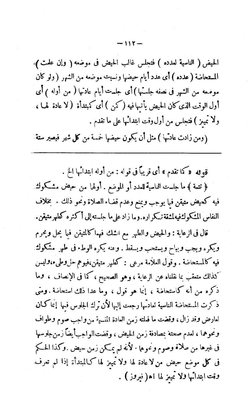 الحيض ( الناسية لعدده ) فتجلس غالب الحيض في موضعه ( وإن علمت ) المستحاضة ( عدده ) أي عدد أيام حيضها ( ونسيت موضعه من الشهر ولو ) كان موضعه من الشهر ( في نصفه جلستها ) أي جلست أيام عادتها ( من أوله ) أي أول الوقت الذي كان الحيض يأتيها فيه ( كمن ) أي كمبتدأة ( لا عادة لها ولاتمييز ) فتجلس من أول وقت ابتدئها على ما تقدم ( ومن زادت عادتها ) مثل أن يكون حيضها خمسة من كل شهر فيصير ستة