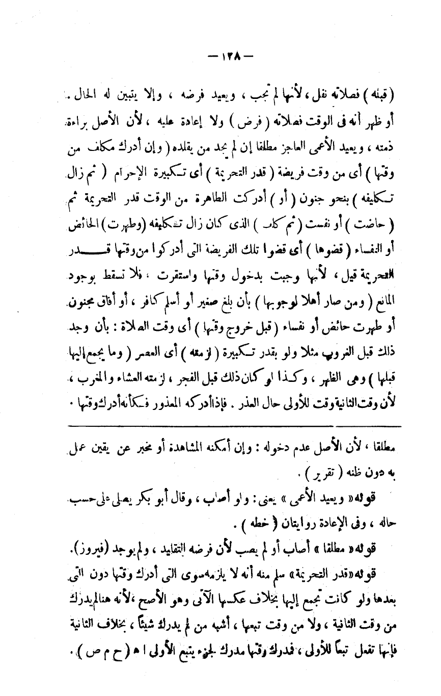 ( قبله ف ) صلاته ( نفل ) لأنها لم تجب ويعيد فرضه ( وإلا ) يتبين له الحال أو ظهر أنه في الوقت ( ف ) صلاته ( فرض ) ولا إعادة عليه لأن الأصل براءة ذمته ويعيد الأعمى العاجز مطلقا إن لم يجد من يقلده ( وإن أدرك مكلف من وقتها ) أي من وقت فريضة ( قدر التحريمة ) أي تكبيرة الإحرام ( ثم زال تكليفه ) بنحو جنون ( أو ) أدركت طاهرة من الوقت قدر التحريمة ثم ( حاضت ) أو نفست ( ثم كلف ) الذي كان زال تكليفه ( وطهرت ) الحائض أو النفساء ( قضوها ) أي قضوا تلك الفريضة التي أدركوا من وقتها قدر التحريمة قبل لأنها وجبت بدخول وقتها واستقرت فلا تسقط بوجود المانع ( ومن صار أهلا لوجوبها ) بأن بلغ صبي أو أسلم كافر أو أفاق من مجنون أو طهرت حائض أو نفساء ( قبل خروج وقتها ) أي وقت الصلاة بأن وجد ذلك قبل الغروب مثلا ولو بقدر تكبيرة ( لزمته ) أى العصر ( وما يجمع إليها قبلها ) وهي الظهر وكذا لو كان ذلك قبل الفجر لزمته العشاء والمغرب لأن وقت الثانية وقت للأولى حال العذر فإذا أدركه المعذور كأنه أدرك وقتها