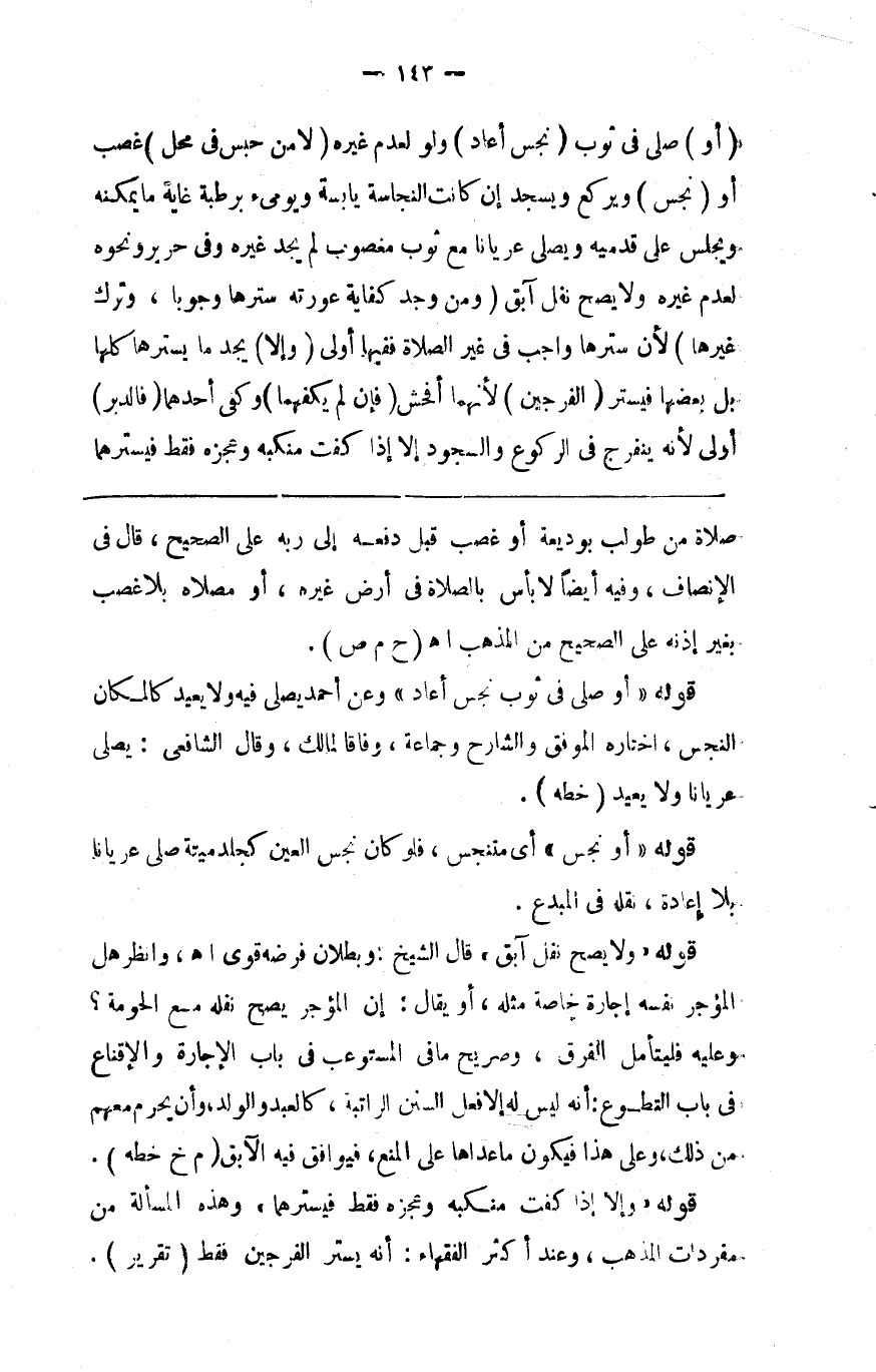 ( أو ) صلى في ثوب ( نجس أعاد ) ولو لعدم غيره ( لا من حبس في محل ) غصب أو ( نجس ) ويركع ويسجد إن كانت النجاسة يابسة ويومىء برطبة غاية ما يمكنه ويجلس على قدميه ويصلي عريانا مع ثوب مغصوب لم يجد غيره وفي حرير ونحوه لعدم غيره ولا يصح نفل آبق ( ومن وجد كفاية عورته سترها ) وجوبا وترك غيرها لأن سترها واجب في غير الصلاة ففيها أولى ( وإلا ) يجد ما يسترها كلها بل بعضها ( ف ) ليستر ( الفرجين ) لأنهما أفحش ( فإن لم يكفهما ) وكفى أحدهما ( فالدبر ) أولى لأنه ينفرج في الركوع والسجود إلا إذا كفت منكبيه وعجزه فقط فيسترهما