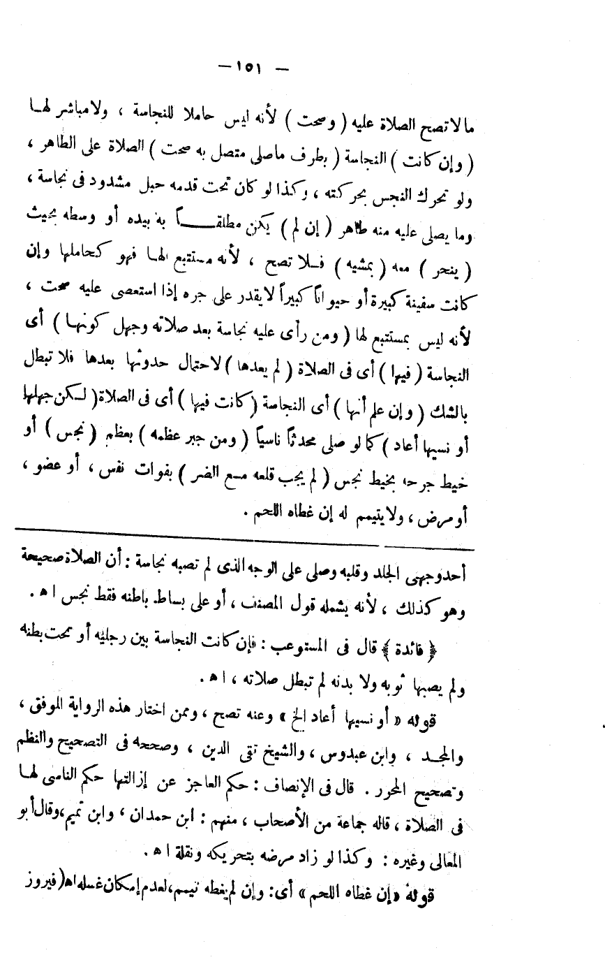 مالا تصح الصلاة عليه ( وصحت ) لأنه ليس حاملا للنجاسة ولا مباشرا لها ( وإن كانت ) النجاسة ( بطرف مصلى متصل به صحت ) الصلاة على الطاهر ولو تحرك النجس بحركته وكذا لو كان تحت قدمه حبل مشدود في نجاسة وما يصلي عليه منه طاهرا ( إن لم ) يكن متعلقا به بيده أو وسطه بحيث ( ينجر ) معه ( بمشيه ) فلا تصح لأنه مستتبع لها فهو كحاملها وإن كانت سفينة كبيرة أو حيوانا كبيرا لايقدر على جره إذا استعصى عليه صحت لأنه ليس بمستتبع لها ( ومن رأى عليه نجاسة بعد صلاته وجهل كونها ) أي النجاسة ( فيها ) أي في الصلاة ( لم يعدها ) لاحتمال حدوثها بعدها فلا تبطل بالشك ( وإن علم أنها ) أي النجاسة ( كانت فيها ) أي في الصلاة ( لكن جهلها أو نسيها أعاد ) كما لو صلى محدثا أو ناسيا ( ومن جبر عظمه ) بعظم ( نجس ) أو خيط جرحه بخيط نجس ومح ( لم يجب قلعه مع الضرر ) بفوات نفس أو عضو أو مرض ولا يتيمم له إن غطاه اللحم