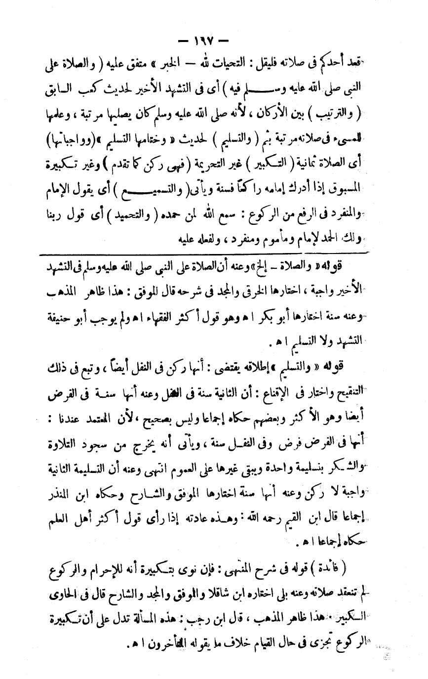 قعد أحدكم في صلاته فليقل التحيات لله الخبر متفق عليه ( والصلاة على النبي صلى الله عليه وسلم فيه ) أي في التشهد الأخير لحديث كعب السابق ( والترتيب ) بين الأركان لأنه صلى الله عليه وسلم كان يصليها مرتبة وعلمها المسيء في صلاته مرتبة بثم ( والتسليم ) لحديث وختامها التسليم واجبات الصلاة ( وواجباتها ) أي الصلاة ثمانية ( التكبير غير التحريمة ) فهي ركن كما تقدم وغير تكبيرة المسبوق إذا أدرك إمامه راكعا فسنة ويأتي ( والتسميع ) أي قول الإمام والمنفرد في الرفع من الركوع سمع الله لمن حمده ( والتحميد ) أي قول ربنا ولك الحمد لإمام ومأموم ومنفرد لفعله صلى