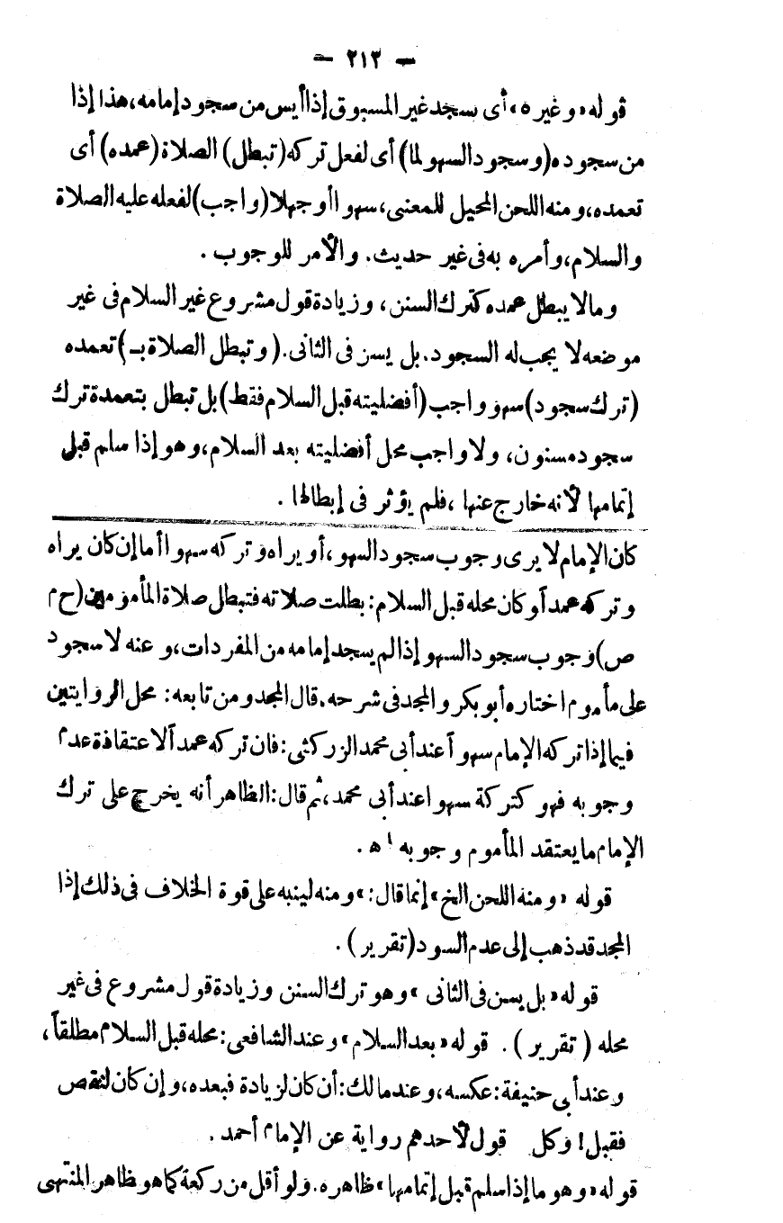 من سجوده ( وسجود السهو لما ) أي فعل لشيء أو تركه ( يبطل ) الصلاة ( عمدة ) أي تعمده ومنه اللحن المحيل للمعنى سهوا أو جهلا ( واجب ) لفعله صلى الله عليه وسلم وأمره به في غير حديث والأمر للوجوب ومالا يبطل عمده كترك السنن وزيادة قول مشروع غير السلام في غير موضعه لا يجب له السجود بل يسن في الثاني ( وتبطل ) الصلاة ( ب ) تعمد ( ترك سجود سهو ) واجب ( أفضليته قبل السلام فقط ) فلا تبطل بتعمد ترك سجود مسنون ولا واجب بل أفضليته بعد السلام وهو إذا سلم قبل إتمامها لأنه خارج عنها فلم يؤثر في إبطالها