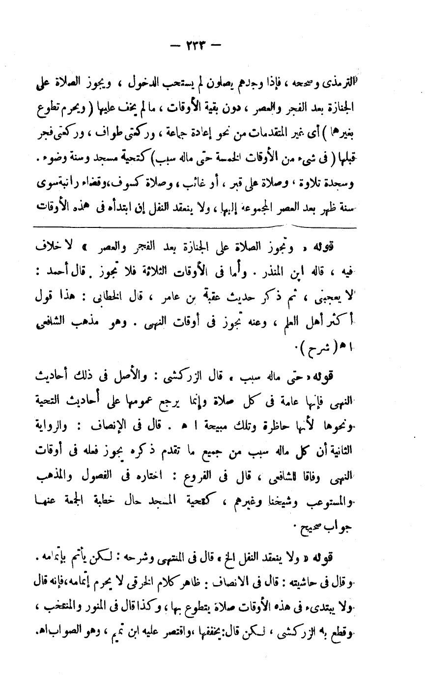 الترمذي وصححه فإذا وجدهم يصلون لم يستحب الدخول وتجوز الصلاة على الجنازة بعد الفجر والعصر دون بقية الأوقات ما لم يخف عليها ( ويحرم تطوع بغيرها ) أي غير المتقدمات من إعادة جماعة وركعتي طواف وركعتي فجر قبلها ( في شيء من الأوقات الخمسة حتى ما له سبب ) كتحية مسجد وسنة وضوء وسجدة تلاوة وصلاة على قبر أو غائب وصلاة كسوف وقضاء راتبة سوى سنة ظهر بعد العصر المجموعه إليها ولا ينعقد النفل إن ابتدأه في هذه الأوقات