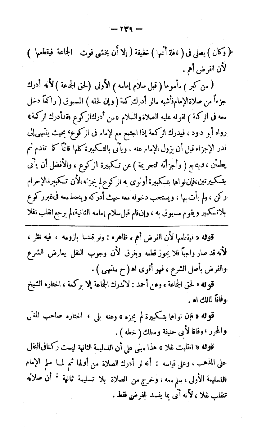 و ( كان ) يصلي في ( نافلة أتمها ) خفيفة ( إلا أن يخشى فوات الجماعة فيقطعها ) لأن الفرض أهم ( ومن كبر ) مأموما ( قبل سلام إمامه ) الأولى ( لحق الجماعة ) لأنه أدرك جزءا من صلاة الإمام فأشبه مالو أدرك ركعة ( وإن لحقه ) المسبوق ( راكعا دخل معه في الركعة ) لقولة صلى الله عليه وسلم من أدرك الركوع فقد أدرك الركعة رواه أبو داود فيدرك الركعة إذا اجتمع مع الإمام في الركوع بحيث ينتهي إلى قدر الأجزاء قبل أن يزول الإمام عنه ويأتي بالتكبيرة كلها قائما كما تقدم ولو لم يطمئن ثم يطمئن ويتابع ( وأجزأته التحريمة ) عن تكبيرة الركوع والأفضل أن يأتي بتكبيرتين فإن نواهما بتكبيرة أو نوى به الركوع لم يجزئه لأن تكبيرة الإحرام ركن ولم يأت بها ويستحب دخوله معه حيث أدركه وينحط معه في غير ركوع بلا تكبير ويقوم مسبوق به وإن قام قبل سلام إمامه الثانية ولم يرجع انقلبت نفلا