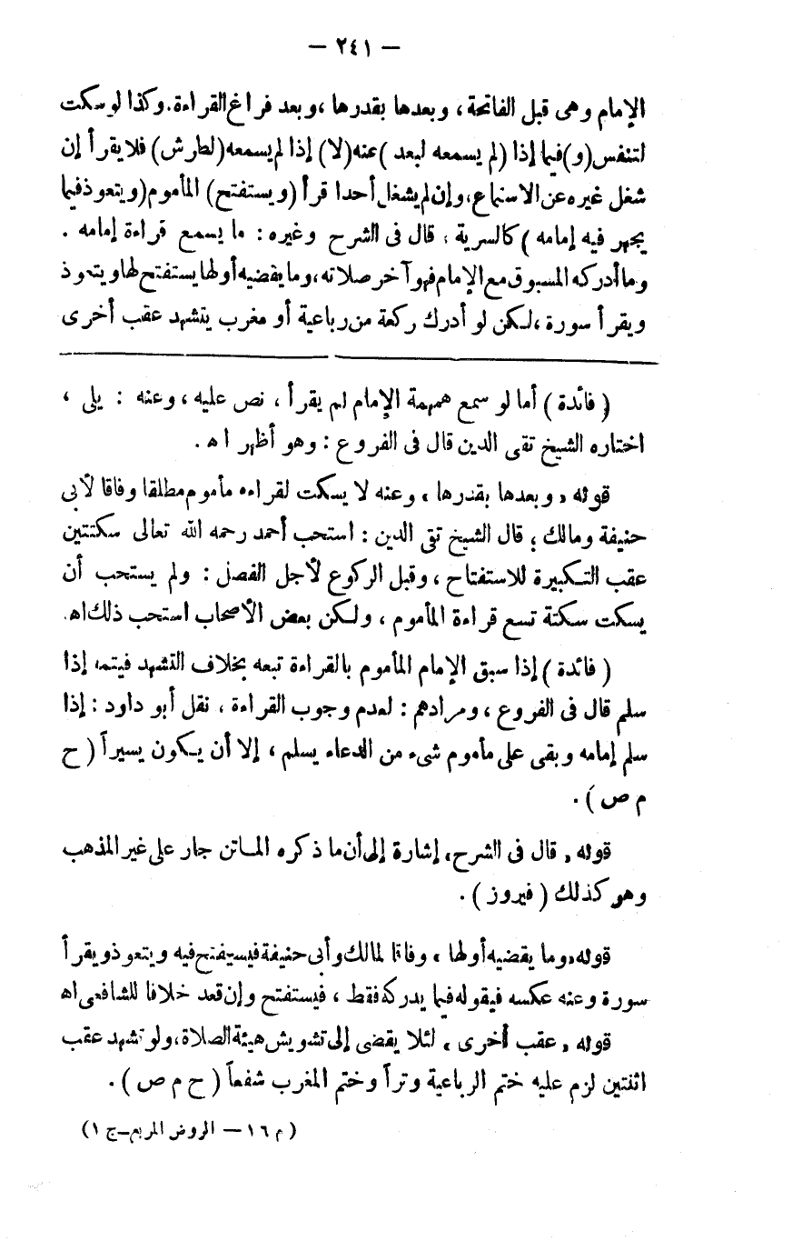 الإمام وهي قبل الفاتحة وبعدها بقدرها وبعد فراغ القراءة وكذا لو سكت لتنفس ( و ) فيما ( إذا لم يسمعه لبعد ) عنه ( لا ) إذا لم يسمعه ( لطرش ) فلا يقرأ إن أشغل غيره عن الاستماع وإن لم يشغل أحدا قرأ ( ويستفتح ) المأموم ( ويتعوذ فيما يجهر فيه إمامه ) كالسرية قال في الشرح وغيره ما لم يسمع قراءة إمامه وما أدرك المسبوق مع الإمام فهو آخر صلاته وما يقضيه أولها يستفتح لها ويتعوذ ويقرأ سورة لكن لو أدرك ركعة من رباعية أو مغرب يتشهد عقب أخرى