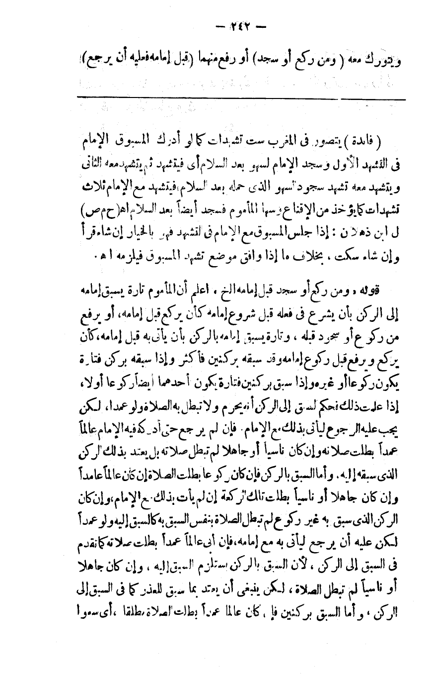 ويتورك معه ( ومن ركع أو سجد ) أو رفع منهما ( قبل إمامه فعليه أن يرفع )