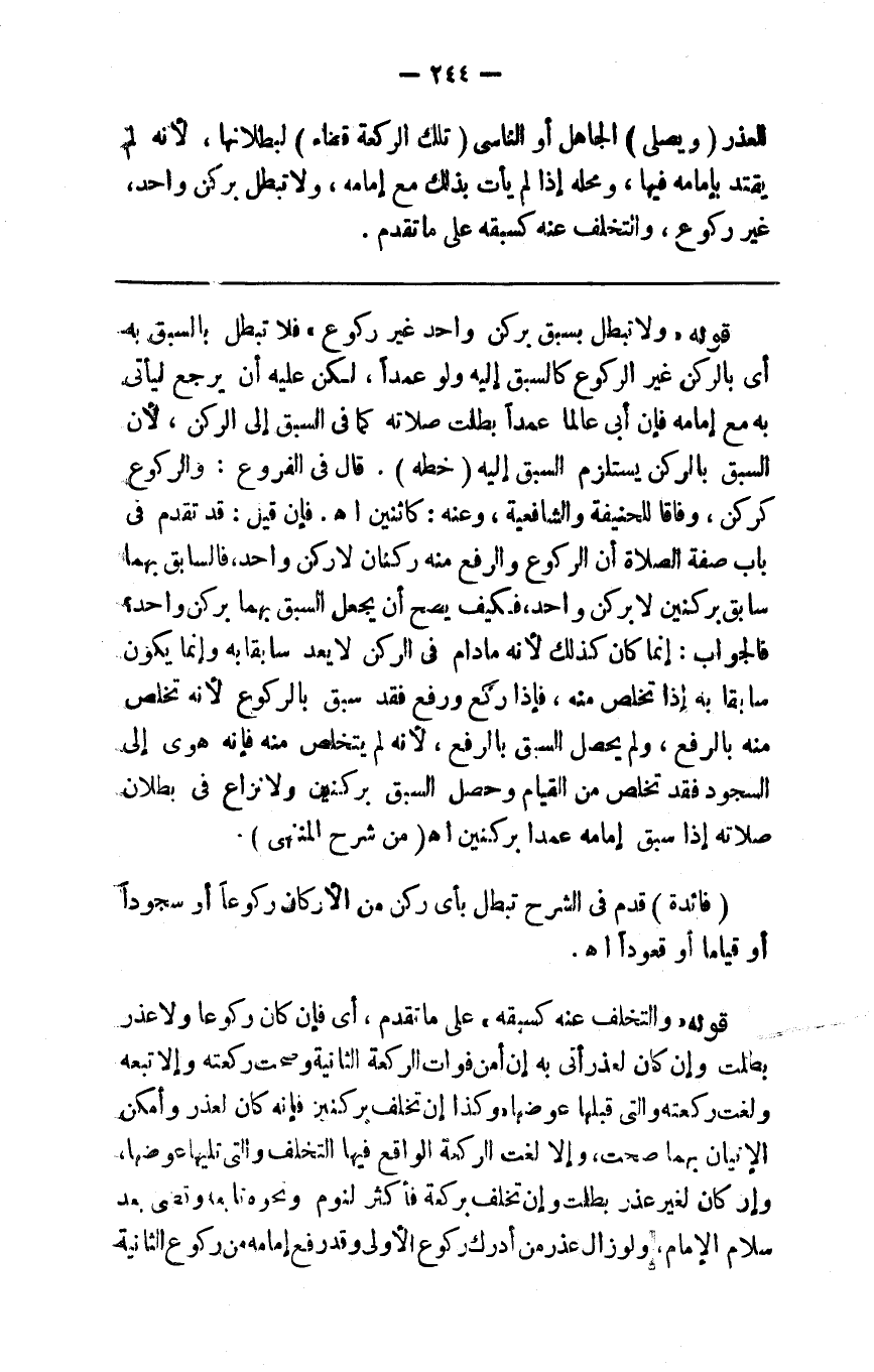للعذر ( ويصلي ) الجاهل أو الناسي ( تلك الركعة قضاء ) لبطلانها لأنه لم يقتد بإمامه فيها ومحله إذا لم يأت بذلك مع إمامه ولا تبطل بسبق بركن واحد غير ركوع والتخلف عنه كسبقه على ما تقدم 0