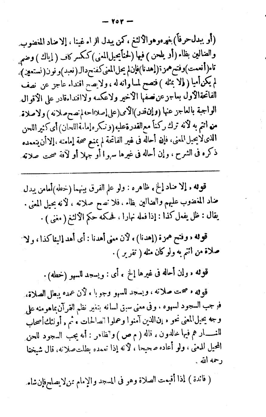 ( أو يبدل حرفا ) بغيره وهو الألثغ كمن يبدل الراء غينا إلاضاد المغضوب والضالين بظاء ( أو يلحن فيها لحنا يحيل المعنى ) ككسر كاف إياك وضم تاء أنعمت وفتح همزة إهدنا فإن لم يحل المعنى كفتح دال نعبد ونون نستعين لم يكن أميا ( إلا بمثله ) فتصح لمساواته له ولا يصح اقتداء عاجز عن نصف الفاتحة الأول لعاجز عن نصفها الآخر ولا عكسه ولا اقتداء قادر على الأقوال الواجبة بعاجز عنها ( وإن قدر ) الأمي ( على إصلاحه لم تصح صلاته ) ولا صلاة من ائتم به لأنه ترك ركنا مع القدرة عليه ( وتكره إمامة اللحن ) أي كثير اللحن الذي لايحيل المعنى فإن أحاله في غير الفاتحة لم يمنع صحة إمامته إلا أن يتعمده ذكره في الشرح وإن أحاله في غيرها سهوا أو جهلا أو لآفة صحت صلاته