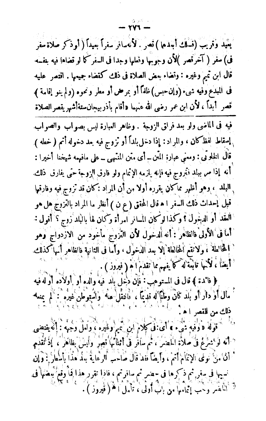 بعيد وقريب ( فسلك أبعدهما ) قصر لأنه مسافر سفرا بعيدا ( أو ذكر صلاة سفر في ) سفر ( آخر قصر ) لأن وجوبها وفعلها وجدا في السفر كما لو قضاها فيه نفسه قال ابن تميم وغيره وقضاء بعض الصلاة في ذلك كقضاء جميعها اقتصر عليه في المبدع وفيه شيء ( وإن حبس ) ظلما أو بمرض أو مطر ونحوه ( ولم ينو إقامة ) قصر أبدا لأن ابن عمر رضي الله عنه أقام بأذربيجان ستة أشهر يقصر الصلاة