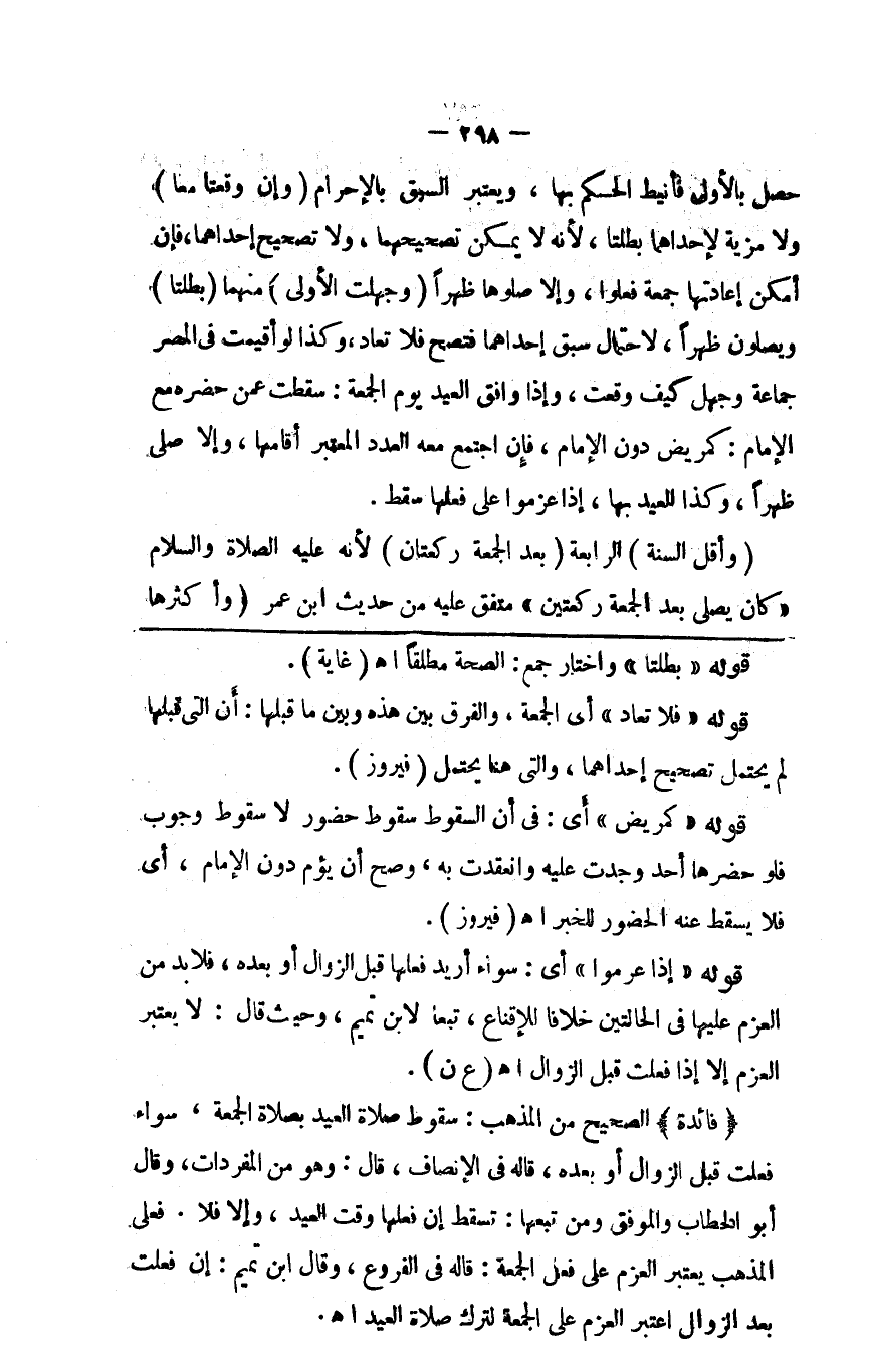 حصل بالأولى فأنيط الحكم بها ويعتبر السبق بالإحرام ( وإن وقعتا معا ) ولا مزية لإحداهما بطلتا لأنه لايمكن تصحيحهما ولا تصحيح إحداهما فإن أمكن إعادتهما جمعة فعلوا وإلا صلوها ظهرا ( أو جهلت الأولى منهما بطلتا ) ويصلون ظهرا لاحتمال سبق إحداهما فتصح ولا تعاد وكذا لو أقيمت في المصر جمعات وجهل كيف وقعت وإذا وافق العبد يوم الجمعة سقطت عمن حضره مع الإمام كمريض دون الإمام فإن اجتمع معه العدد المعتبر أقامها وإلا صلى ظهرا وكذا العيد بهما إذا عزموا على فعلها سقط