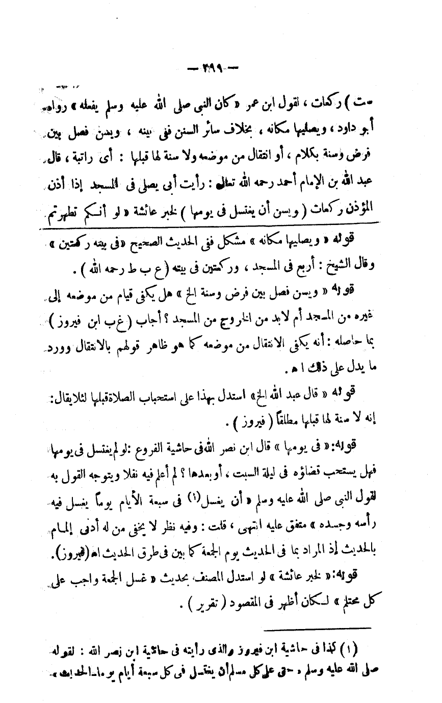 ست ) ركعات لقول ابن عمر كان النبي صلى الله عليه وسلم يفعله رواه أبو داود ويصليها مكانه بخلاف سائر السنن فبيته ويسن فصل بين فرض وسنة بكلام أو انتقال من موضعه ولاسنة لها قبلها أي راتبة قال عبد الله رأيت أبي يصلي في المسجد إذا أذن المؤذن ركعتين ( ويسن أن يغتسل لها في يومها ) لخبر عائشة لو أنكم تطهرتم