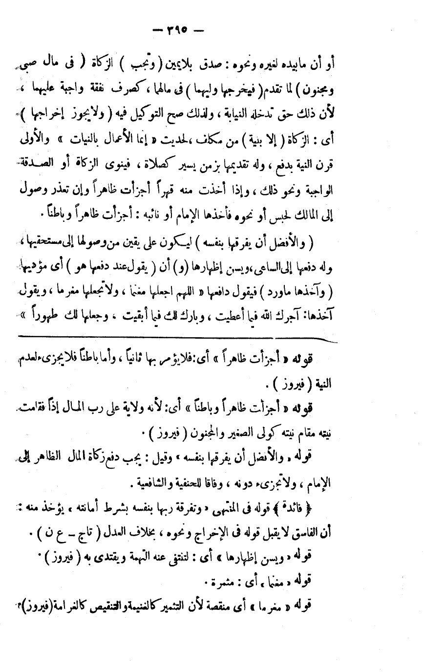 أو أن ما بيده لغيره ونحوه صدق بلا يمين ( وتجب الزكاة ( في مال صبي ومجنون ) لما تقدم ( فيخرجها وليهما ) في مالهما كصرف نفقة واجبة عليهما لأن ذلك حق تدخله النيابة ولذلك صح التوكيل فيه ( ولا يجوز إخراجها ) أي الزكاة ( إلابنية ) من مكلف لحديث إنما الأعمال بالنيات والأولى قرن النية بدفع وله تقديمها بزمن يسير كصلاة فينوي الزكاة أو الصدقة الواجبة ونحو ذلك وإذا أخذت منه قهرا أجزأت ظاهرا وإن تعذز وصول إلى المالك لحبس أو نحوه فأخذها الإمام أو نائبه أجزأت ظاهرا وباطنا ( والأفضل أن يفرقها بنفسه ) ليكون على يقين من وصولها إلى مستحقها وله دفعها إلى الساعي ويسن إظهارها ( و ) أن ( يقول ) عند دفعها ( هو ) أي مؤديها ( وآخذها ما ورد ) فيقول دافعها اللهم اجعلها مغنما ولا تجعلها مغرما ويقول آخذها آجرك الله فيما أعطيت وبارك لك فيما أبقيت وجعله لك طهورا