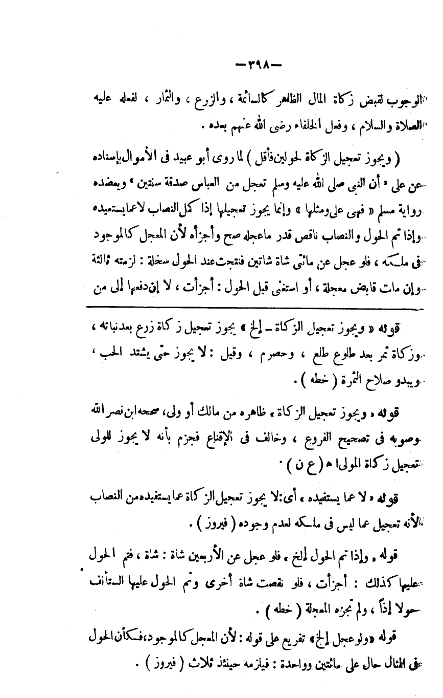 الوجوب لقبض زكاة المال الظاهر كالسائمة والزرع والثمار لفعله صلى الله عليه وسلم وفعل الخلفاء رضي الله عنهم بعده ( ويجوز تعجيل الزكاة لحولين فأقل ) لما روى أبو عبيدة في الأموال بإسناده عن علي أن النبي صلى الله عليه وسلم تعجل من العباس صدقة سنتين ويعضده رواية مسلم فهي علي ومثلها وإنما يجوز تعجيلها إذا كمل النصاب لا عما يستفيده وإذا تم الحول والنصاب ناقص قدر ما عجله صح وأجزأه لأن المعجل كالموجود في ملكه فلو عجل عن مائتي شاة شاتين فنتجت عند الحول سخلة لزمته ثالثة وإن مات قابض معجلة أو استغنى قبل الحول أجزأت لا إن دفعها إلى من