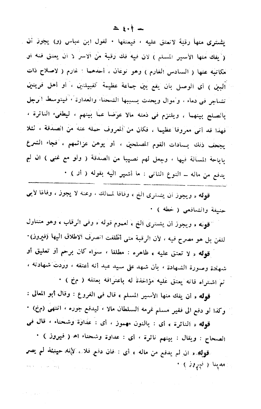 يشتري منها رقبة لا تعتق عليه فيعتقها لقول ابن عباس ( و ) يجوز أن ( يفك منها الأسير المسلم ) لأن فيه فك رقبة من الأسر لا أن يعتق قنه أو مكاتبه عنها ( السادس الغارم ) وهو نوعان أحدهما غارم ( لإصلاح ذات البين ) أي الوصل بأن يقع بين جماعة عظيمة كقبيلتين أو أهل قريتين تشاجرا في دماء وأموال ويحدث بسببها الشحناء والعداوة فيتوسط الرجل بالصلح بينهما ويلتزم في ذمته مالا عوضا عما بينهم ليطفىء الثائرة فهذا قد أتى معروفا عظيما فكان من المعروف حمله عنه من الصدقة لئلا يجحف ذلك بسادات القوم المصلحين أو يوهن عزائمهم فجاء الشرع بإباحة المسألة فيها وجعل لهم نصيبا من الصدقة ( ولو مع غنى ) إن لم يدفع من ماله النوع الثاني ما أشير إليه بقوله ( أو )