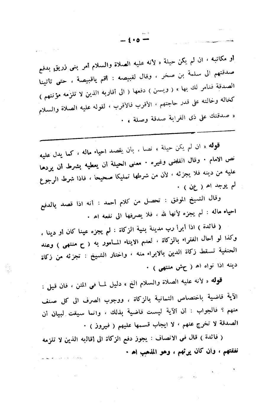 ولو غريمه أو مكاتبه إن لم يكن حيلة لأنه صلى الله عليه وسلم أمر بني زريق بدفع صدقتهم إلى سلمة بن صخر وقال لقبيصة أقم ياقبيصة حتى تأتينا الصدقة فنأمر لك بها ( ويسن ) دفعها ( إلى أقاربه الذين لا تلزمه مؤونتهم ) كخاله وخالته على قدر حاجتهم الأقرب فالأقرب لقوله صلى الله عليه وسلم صدقتك على ذي القرابة صدقة وصلة %