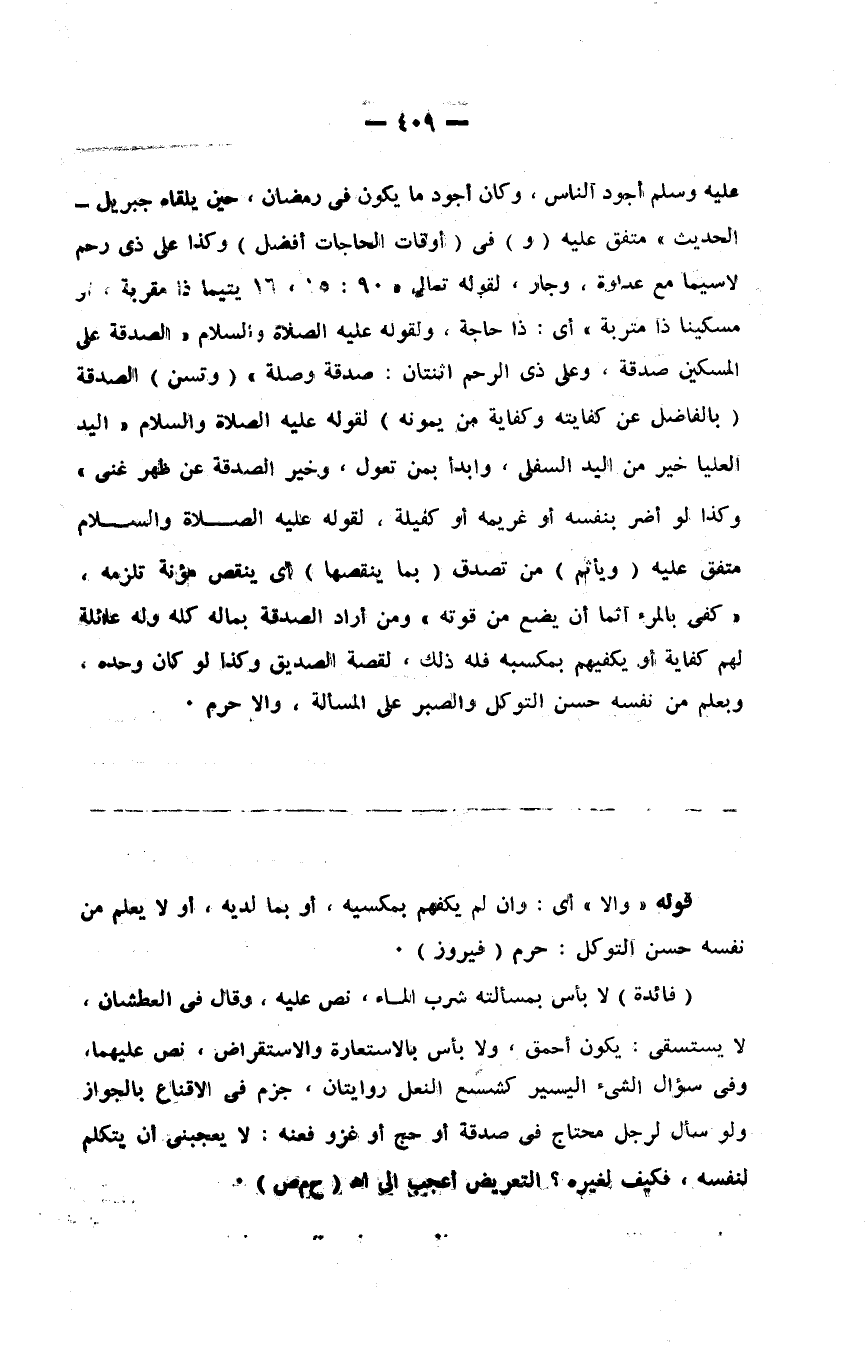 وسلم أجود الناس وكان أجود ما يكون في رمضان حين يلقاه جبريل الحديث متفق عليه ( و ) في ( أوقات الحاجات أفضل ) وكذا على ذي رحم لا سيما مع عداوة وجار لقوله تعالى { يتيما ذا مقربة أو مسكينا ذا متربة } ولقوله صلى الله عليه وسلم الصدقة على المساكين صدقة وعلى ذي رحم اثنتان صدقة وصلة ( وتسن ) الصدقة ( بالفاضل عن كفايته و ) كفاية ( من يمونه ) لقوله صلى الله عليه وسلم اليد العليا خير من اليد السفلى وأبدأ بمن تعول وخير الصدقة عن ظهر غنى متفق عليه ( ويأتم ) من تصدق ( بما ينقصها ) أي ينقص مؤونة تلزمه وكذا لو أضر بنفسه أو غريمه أو كفيله لقوله صلى الله عليه وسلم كفي بالمرء إثما أن يضيع من يقوت ومن أراد الصدقة بماله كله وله عائلة لهم كفاية أو يكفيهم بمكسبه فله ذلك لقصة الصديق وكذا لو كان وحده ويعلم من نفسه حسن التوكل والصبر على المسألة وإلا حرم
