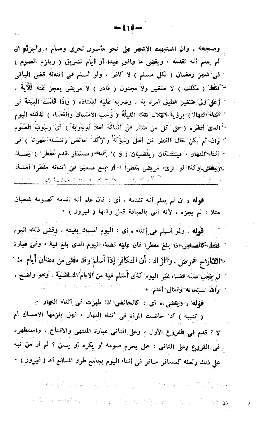 والأضحى يوم يضحي ا لناس رواه الترمذي وصححه وإن اشتبهت الأشهر على ما نحو مأسور وتحرى صام وأجزأه إن لم يعلم أنه تقدمه ويقضي ما وافق عيدا أو أيام تشريق ( ويلزم الصوم ) في شهر رمضان ( لكل مسلم ) لا كافر ولو أسلم في أثنائه قضى الباقي فقط ( مكلف ) لا صغير ومجنون ( قادر ) لا مريض يعجز عنه للآية وعلى ولي صغير مطيق أمره به وضربه عليه ليعتاده ( وإذا قامت البينة في أثناء النهار ) برؤية الهلال تلك الليلة ( وجب الإمساك والقضاء ) لذلك اليوم الذي أفطره ( على كل من صار في أثنائه أهلا لوجوبه ) أي وجوب الصوم وإن لم يكن حال الفطر من أهل وجوبه ( وكذا حائض ونفساء طهرتا ) في أثناء النهار فيمسكان ويقضيان ( و ) كذا ( مسافر قدم مفطرا ) يمسك ويقضي وكذا لو برىء مريض مفطرا أو بلغ صغير في أثنائه مفطراأمسك